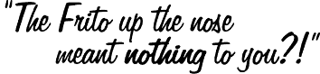 blah," he replied. I wanted to scream, "So the Frito up the nose