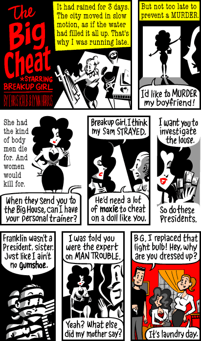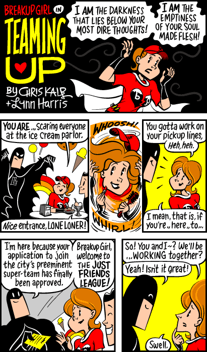 Breakup Girl helps a dark avenger crash a super-powered singles event…