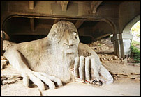 troll lying in wait -- and snacking on a VW bug (the old kind) --