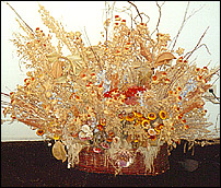 flowers (dried/alive): feathery wheat stalks, lavender, daisies. Quel bridge?