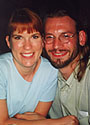As David has said, "People believe urban legends about people stealing your kidneys, but they can't believe a story about people who are happy." See for yourselves! Here's what you wanted to know about how this couple -- against bizarre odds and through a truly 90s twist of fate -- got that way. Raindrop asks, "Most selection processes automatically weed out people with different religions, habits, etc.. But I've read that David's a smoking atheist, while Elizabeth is a non-smoking Catholic. So, can you describe the search process in greater depth? How did your friends decide what was ultimately important?" Dave: During all the media buzz, Steve (my Wedding Campaign Coordinator) and I tried to get much of that information into the public eye: we figured that people would self-select out of the process. As we discovered, however, this didn't work as well as we planned. Even posing on the nightly news with a cigarette in hand didn't convey the message clearly enough, and some women were still surprised to find out on the day of the selection process that I smoked. Honestly, on that day, I smoked a lot; the crowd was nutty. We had many discussions beforehand on what's really important, but there was no direct coordination of the questions people would be asking. Each friend approached the process from a different perspective, and that was important to me. Bethy: Simply saying I'm a non-smoking Catholic gives about the same amount of information as "she's a twenty-nine year old redhead." I think the mistake in applying labels and then drawing conclusions from them for the purpose of weeding out potential mates is that the labels themselves may be inadequate or even downright wrong. You kind of have to look at it like there's big stuff and there's little stuff. The big stuff is what is important to you, and the little stuff is what you can leave or take; what doesn't matter. You have to be willing to shrug some of the little stuff off because no one, and I mean no one, is the perfect mate. I'm not even convinced there's such a phenomenon as being perfect for one another. I think there is a lot of truth to the idea that opposites attract, and I also think differences over time kind of balance themselves out naturally. Just tonight my mom was telling me how Dave has become less spontaneous since we've been married whereas she thinks I've become more spontaneous. The end result is the same, though. We're goofballs.