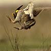 air, dancing and booming. Females watch from the safety of tall prairie grass.